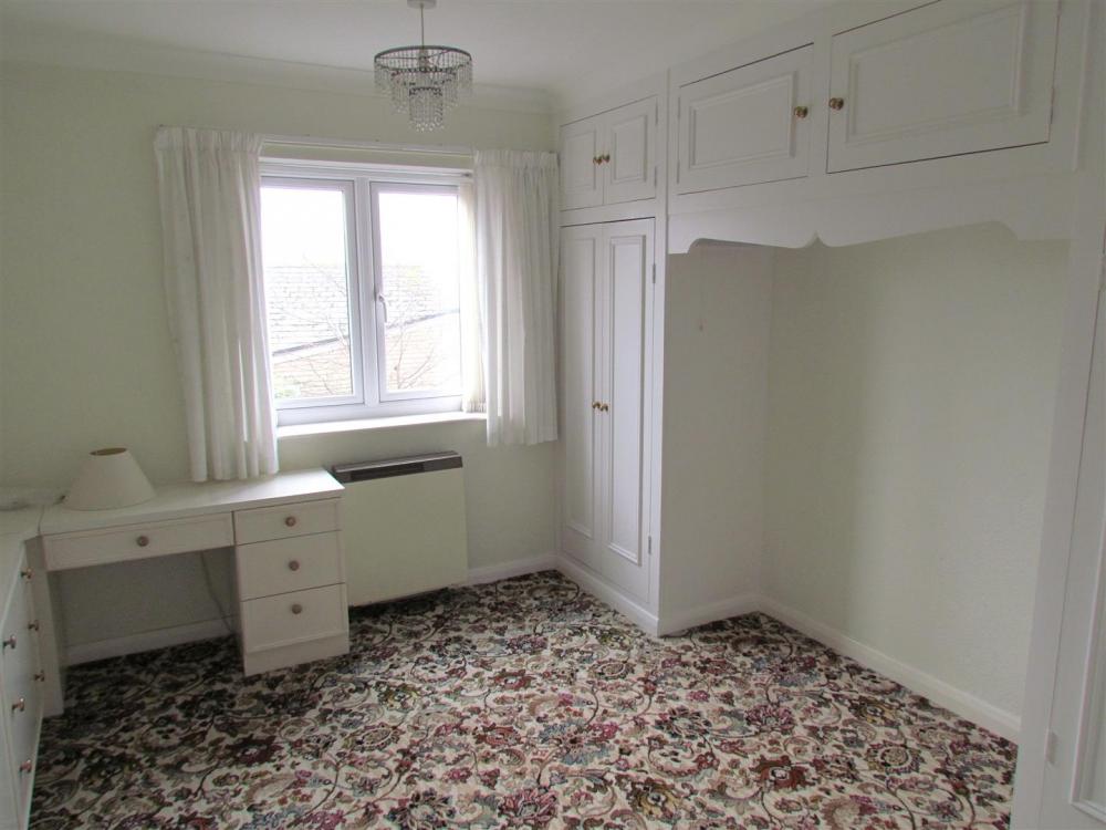 With fitted furniture comprising, fitted wardrobes, storage cupboards above bed recess, drawer units and dressing table. Wall mounted heater, double glazed window and coving to ceiling.
