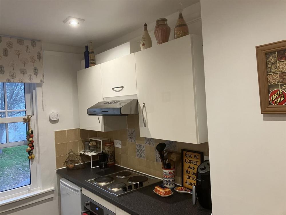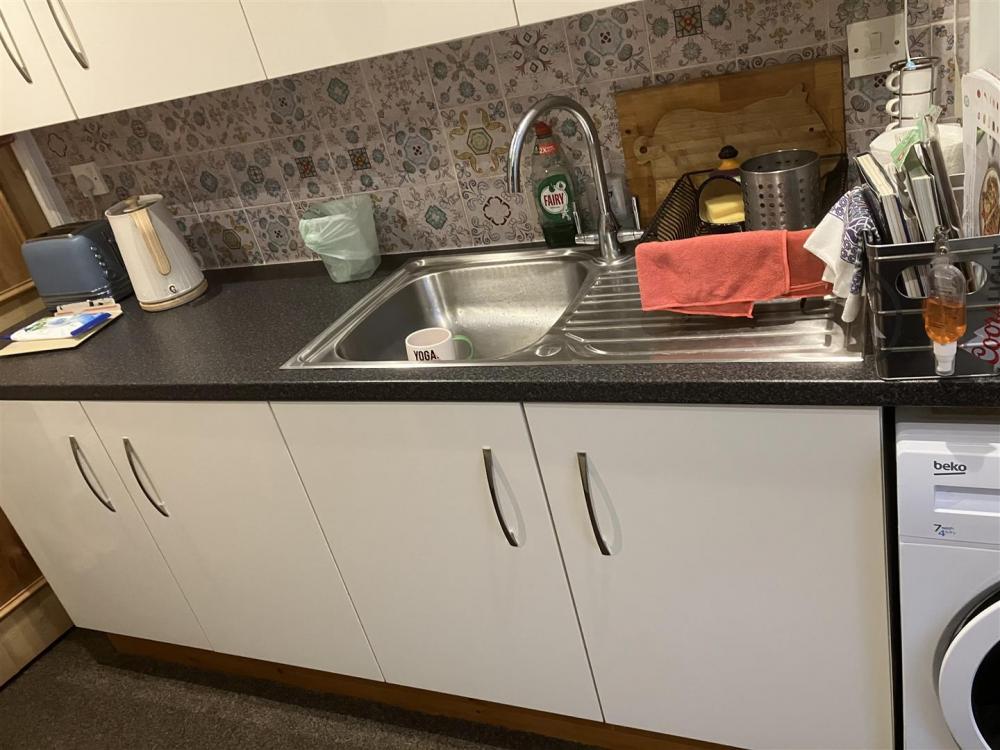 Fitted with a range of base and wall mounted units and formica work surfaces over, stainless steel sink and drainer with chrome mixer taps, integrated double oven and grill, 4 ring electric hob and extractor fan over, gas-fired combi boiler, uPVC double glazed window and double radiator.