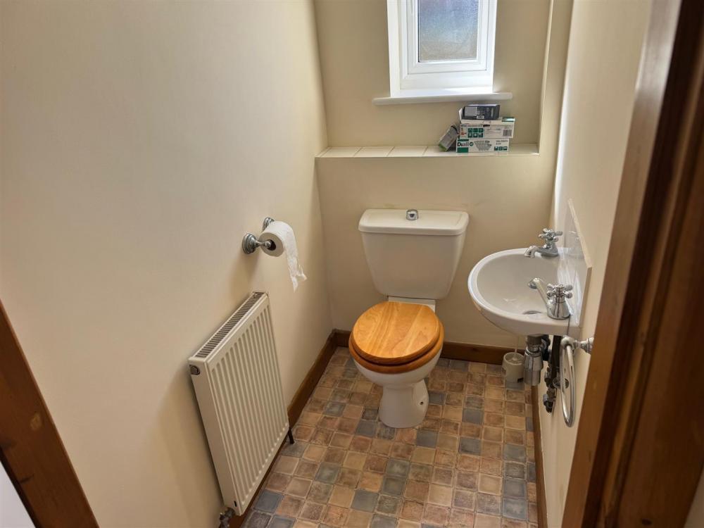 Housing wash hand basin with tiled splash backs and low flush w.c. There is a double glazed window to the rear elevation, central heating radiator, extractor fan.