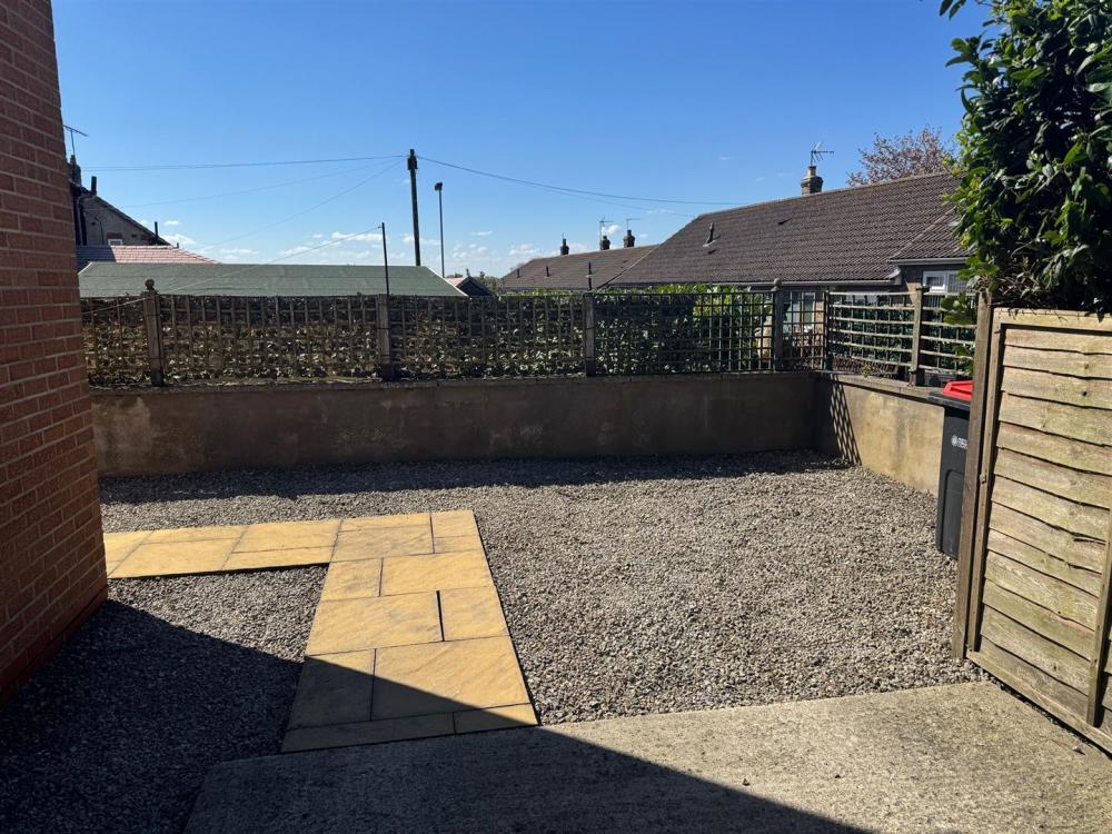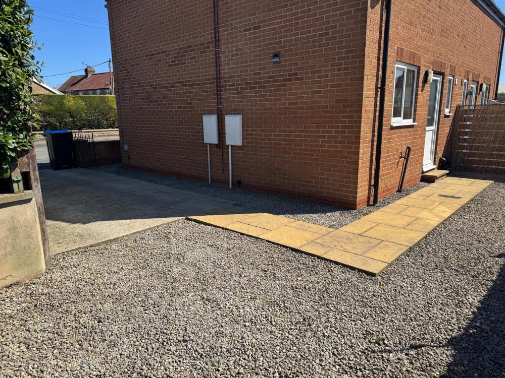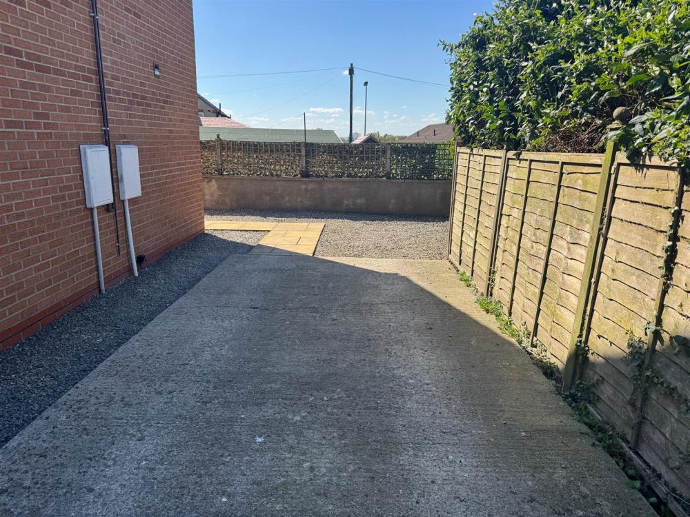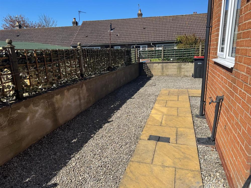 Walled, low maintenance gravelled area to the front and gated access to the front door, gated driveway to the side leading to low maintenance rear garden being gravelled with retaining wall and trelis above.