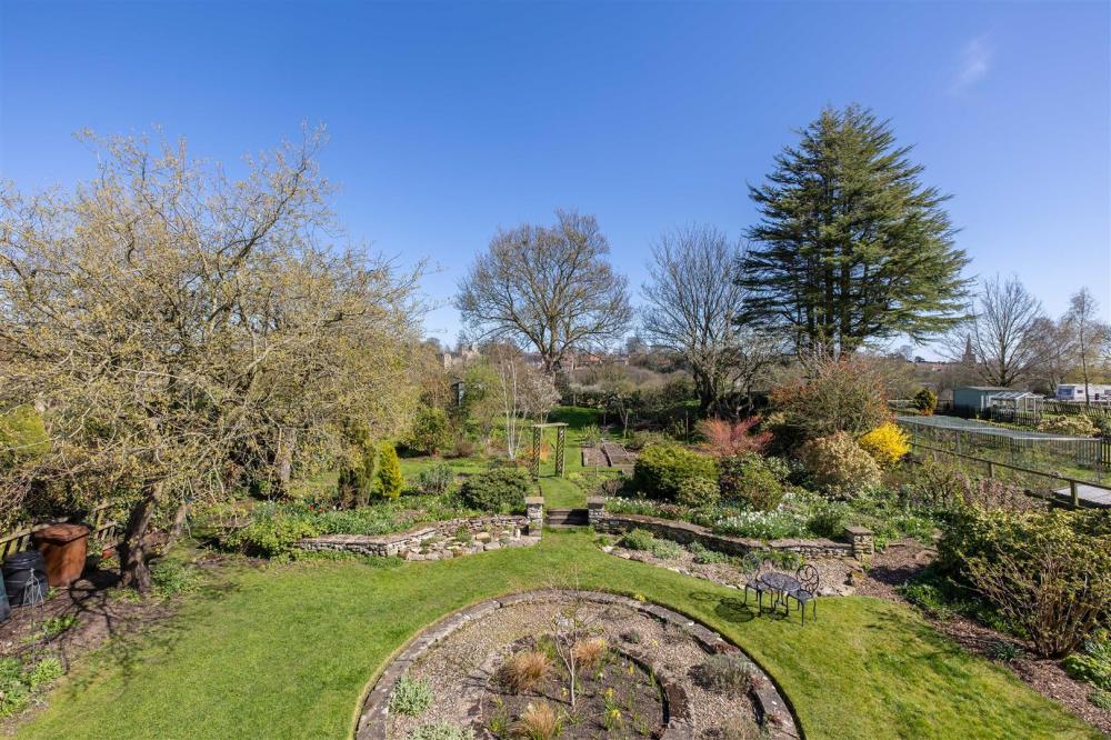 The rear garden borders an open field which is within the conservation area and provides views over Pickering and beyond; the mature garden comprises, lawns, pond, paved areas and pathways with beds and borders containing a wealth of spring flowering bulbs, shrubs, other plants and trees.