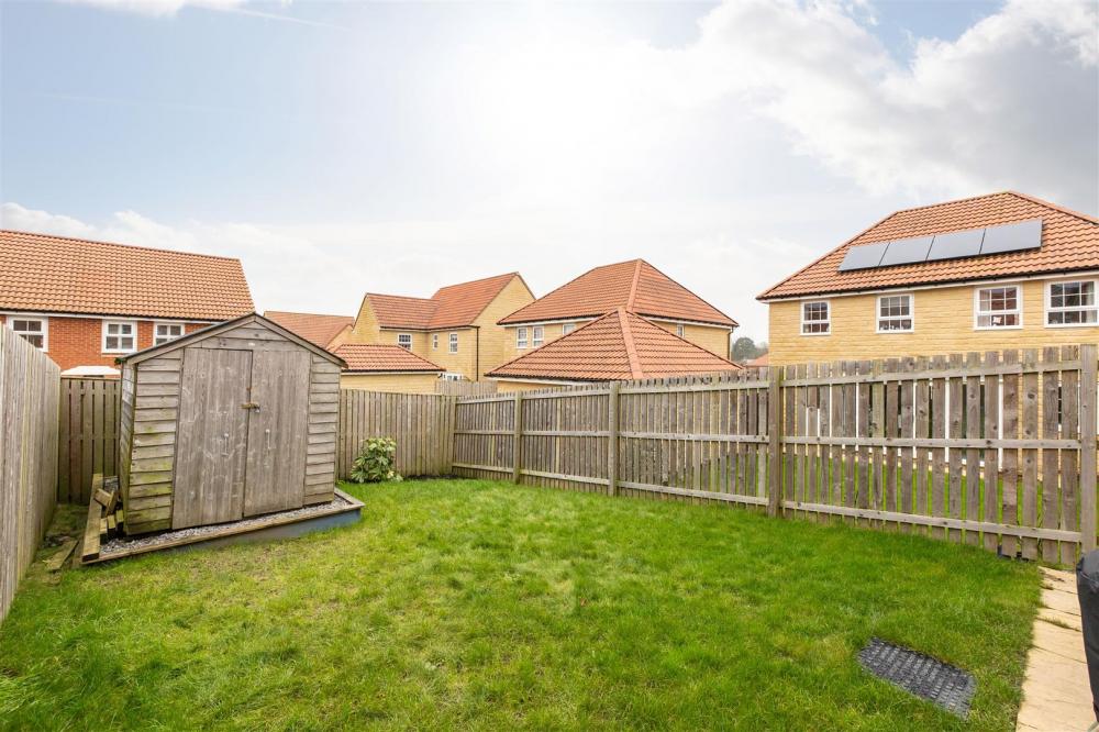 Block paved driveway capable of parking two cars, external electric sockets, paved side access leads to the south facing rear garden having paved area, laid lawn and fencing to the boundaries.