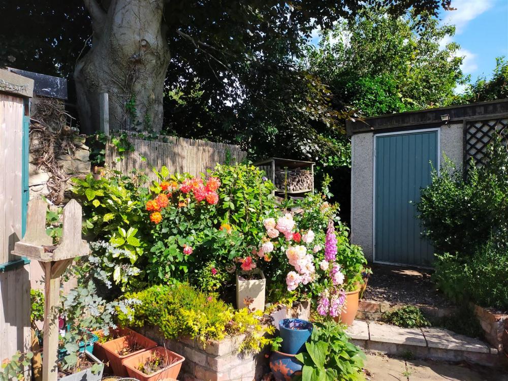 Enclosed paved courtyard with stone wall to the boundaries, garden gate and outside tap. Good sized garden with laid lawn, seating area with flower and shrubbery boarders and various outbuildings and summerhouse