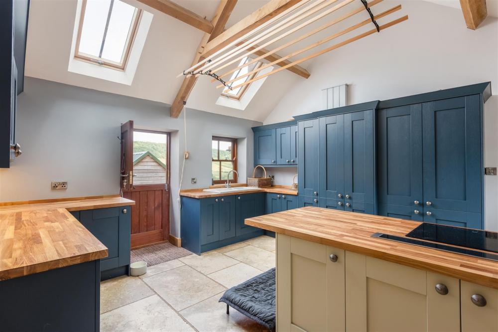 Dual aspect with timber frame double glazed sash windows to the front and rear, timber door to the front, timber stable door to the rear, 2 no. roof lights, fitted base and wall mounted units, ceramic sink and drainer with chrome mixer tap over, ceramic four ring hob, plumbing for washing machine.