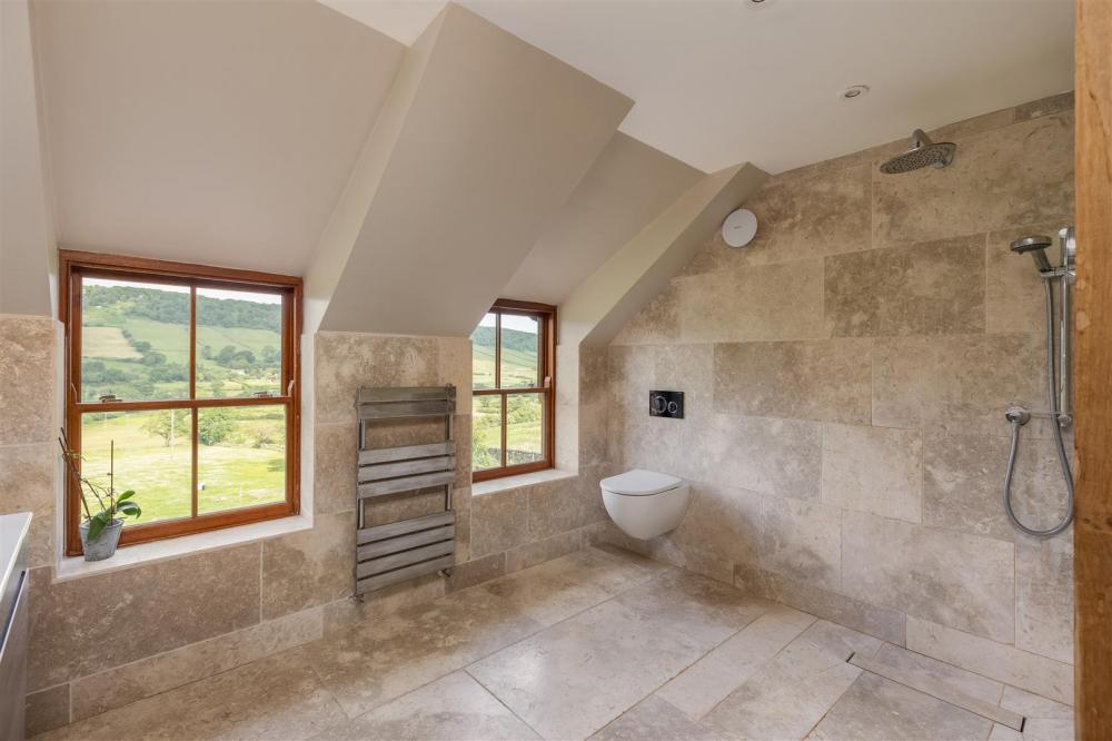 Dual aspect timber timber frame double glazed windows, chrome shower fittings, low flush wc, twin wash hand basins into vanity unit, flat panel heated towel rail, loft hatch.