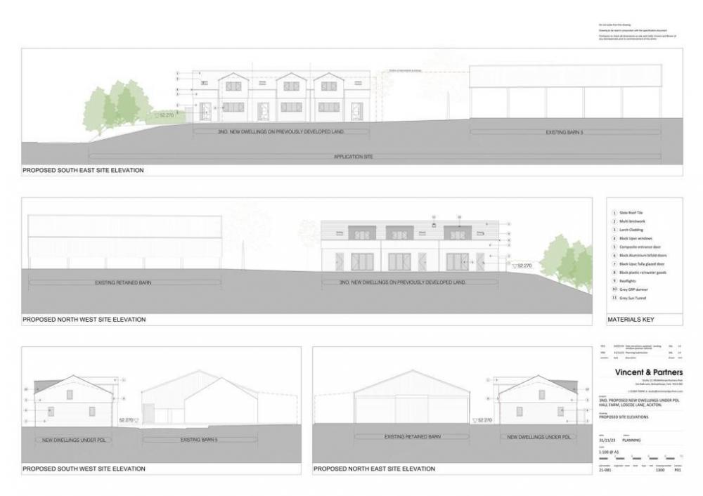 The 0.22 ha (0.55 acre) site comprises former agricultural buildings, including barns, brick units, and a stable, with access from Loscoe Lane (B6134). Permission allows for six townhouses in two terrace blocks of three, formed from the demolition of the stable block on the southern edge and from the Class Q conversion of the northern barn. There are two grass paddocks (3.68 acres and edged blue) available separately for £60,000 with an overage clause.