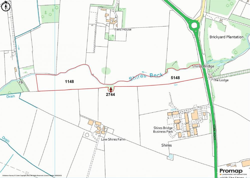 The flat lying land extends to approximately 13.54 acres (5.48 hectares) in total. Shires Beck runs along the northern boundary of the whole of the land.