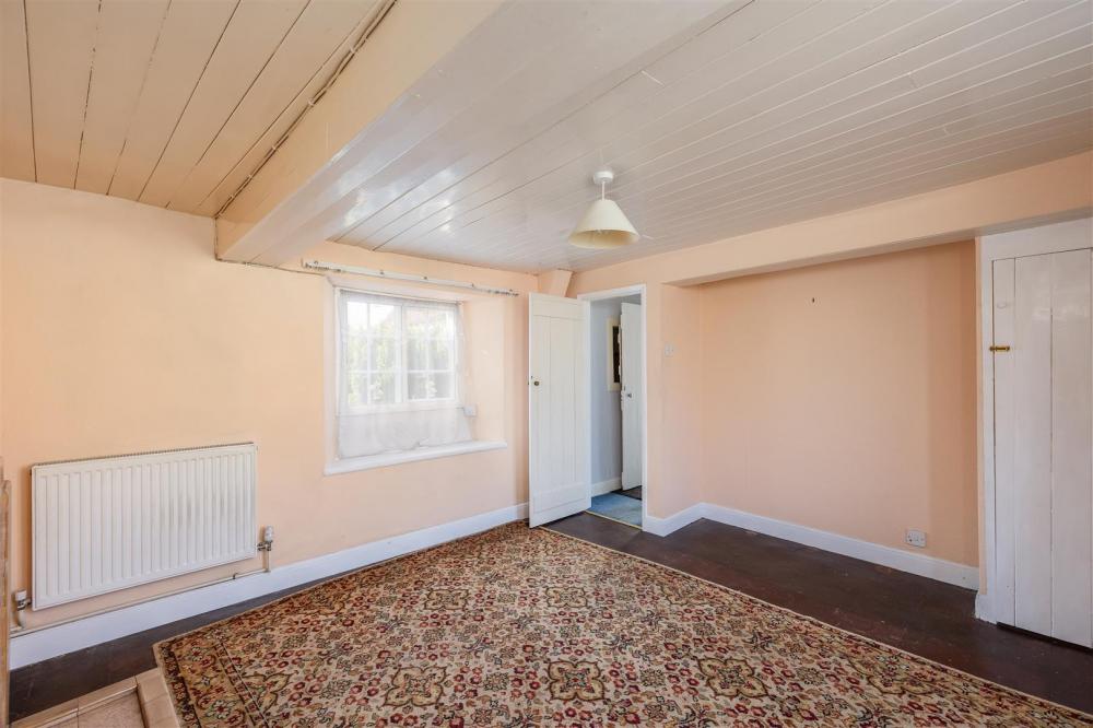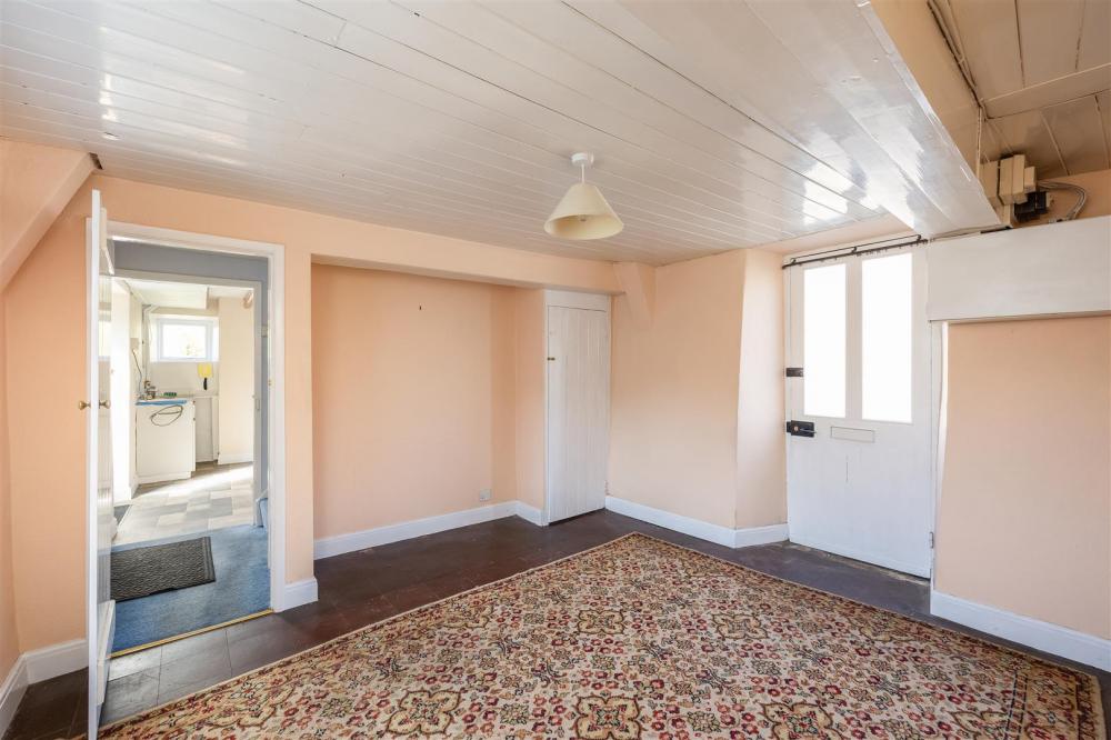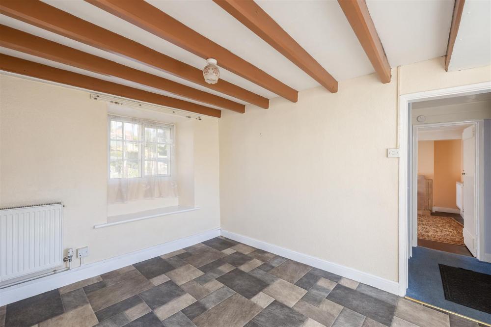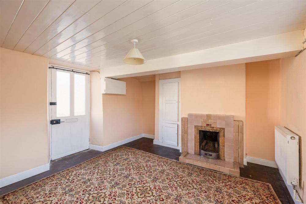 Rear aspect timber frame Yorkshire sliding window with secondary glazing, open fireplace with tiled hearth and surround, tiled floor, built-in cupboard and understairs cupboard, double radiator.