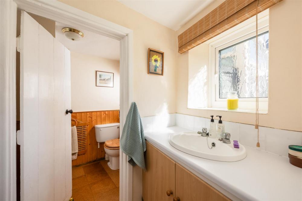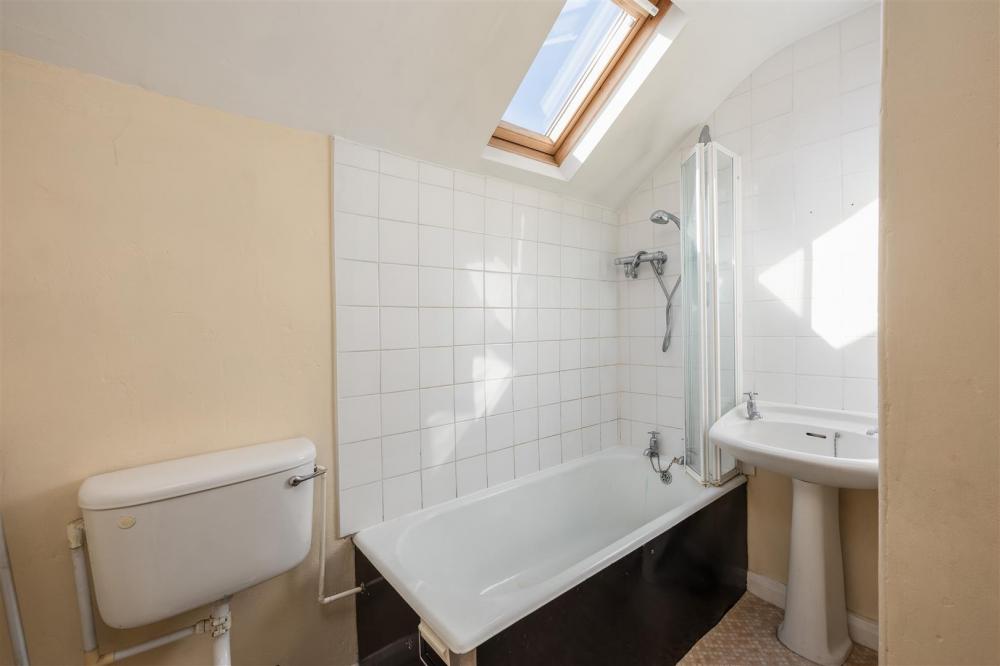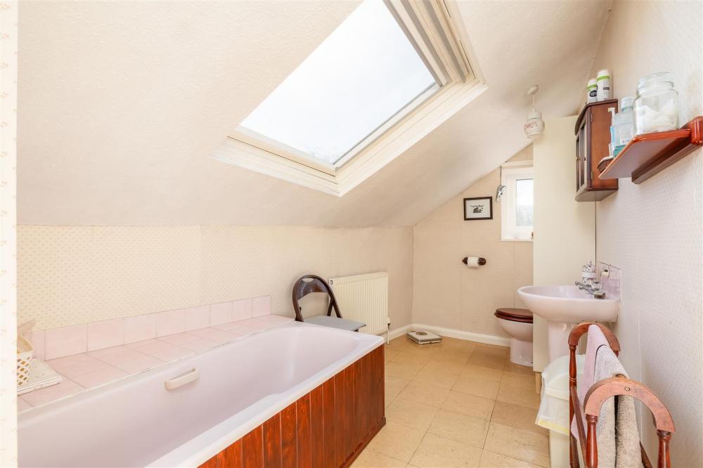 Rear aspect uPVC double glazed window, skylight, three piece suite comprising panelled bath, wc and pedestal wash hand basin, single radiator, tiled floor.