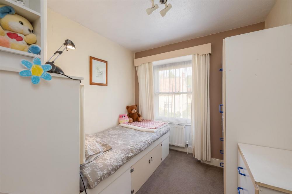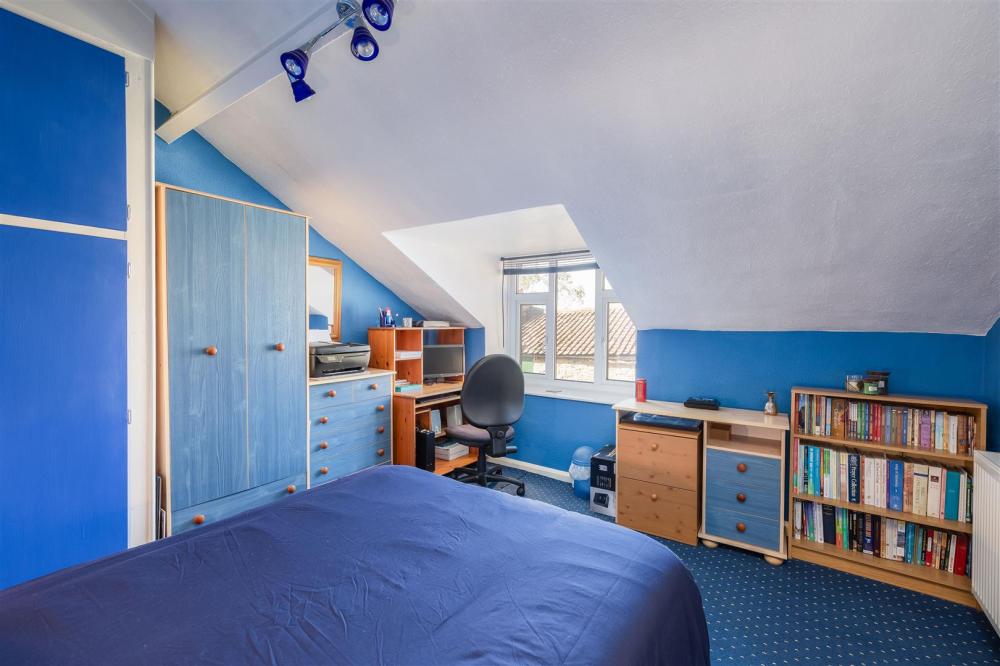 Loft hatch with ladder, cupboard with shelving, single radiator, uPVC double glazed window to the rear.