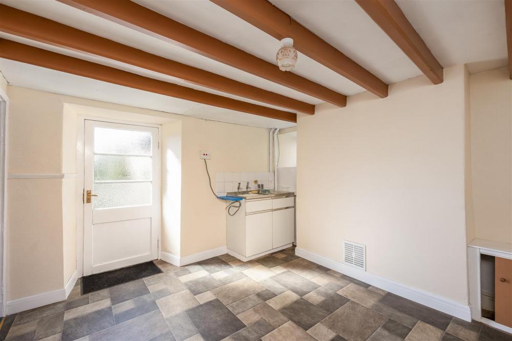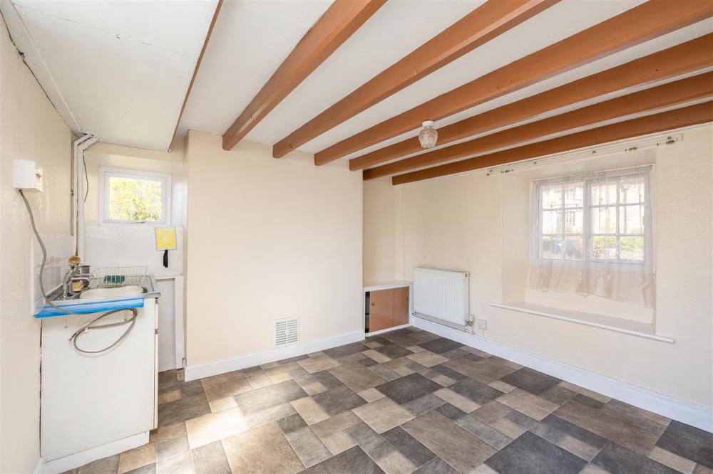 Side aspect timber frame window, front aspect Yorkshire sliding window with secondary glazing, stainless steel sink and drainer with cupboard under, double radiator, timber beam ceiling, door to outside rear.