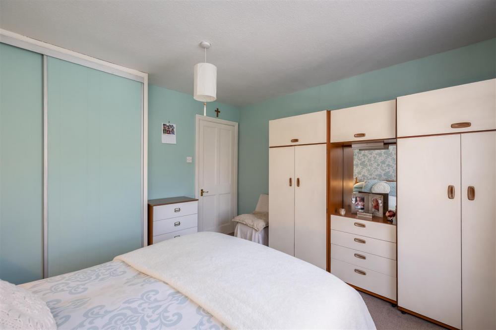 Front aspect timber Yorkshire sliding window with secondary glazing, 2 no built-in cupboards, one housing the Gloworm boiler, double radiator.
