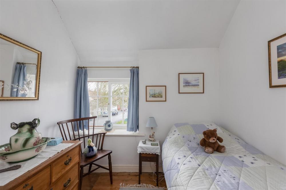 With walk in airing cupboard with hanging space and shelving and hot water cylinder. Stripped wooden flooring, wall mounted heater, double glazed window to the front elevation.
