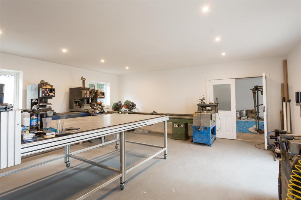 With electric up and over door, side aspect uPVC triple glazed window, and personnel door to the utility room.