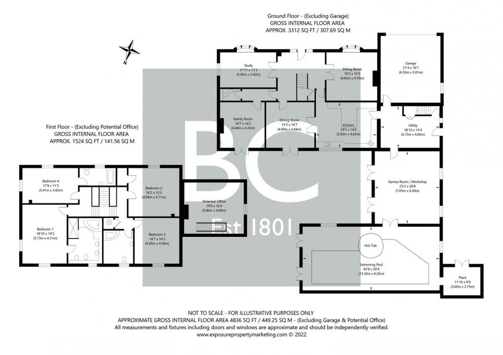 A superbly spacious and individually designed four bedroom detached residence extending to approximately 4,836 sq.ft., situated in the heart of the residential village of Kirby Grindalythe and on the northern edge of the Yorkshire Wolds. The village lies 9 miles south east of Malton and its extensive amenities. The property benefits from four reception rooms, dining kitchen, utility room, workshop and indoor swimming pool and hot tub, four double bedrooms, (two en-suite) and house bathroom. Smithy Cottage is set within a generous and private plot, with plentiful off-street parking and extensive gardens and grounds extending to 1.26 acres (0.51 hectares). The property would be suitable for a variety of purchasers attracted to the internal and external space on offer, allowing opportunities to work from home and for families looking for a property to enable multi-generational living.