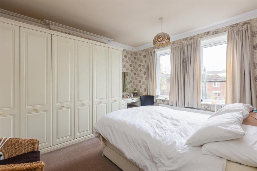 With two double glazed windows to the front elevation, fitted wardrobes, dressing table and drawer compartments, coving to ceiling and central heating radiator.