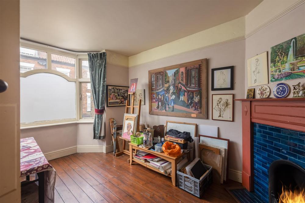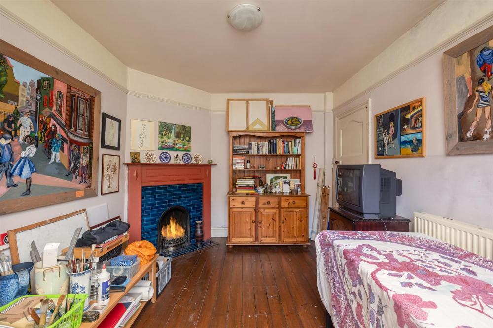 Front aspect timber frame single glazed window; cast iron open fireplace, tiled with timber surround; picture rail and double radiator.