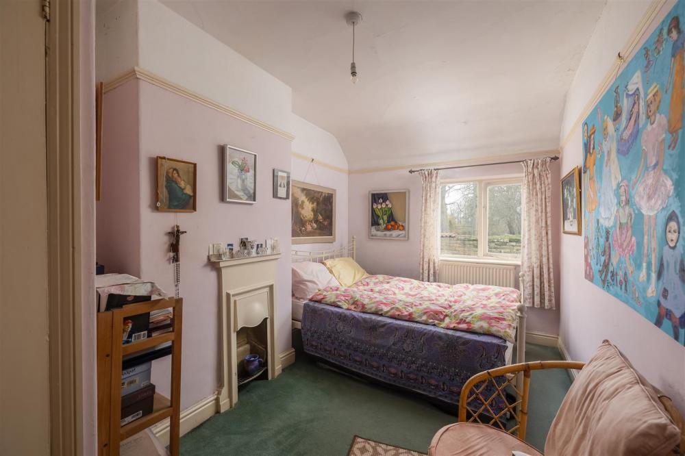 Rear aspect timber frame single glazed window; open fireplace with timber surround; picture rail; single radiator