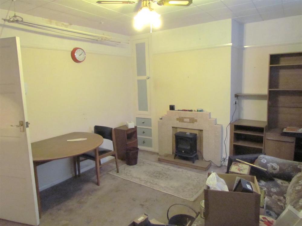 Tiled fireplace, window to the rear elevation and built in cupboard, understairs storage cupboard and walk in pantry.