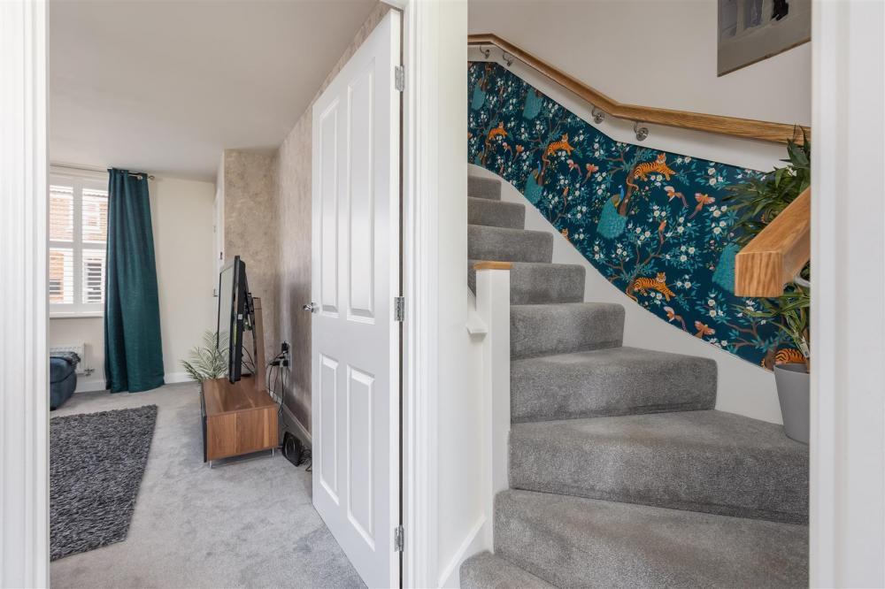 To the first floor the main bedroom has the benefit of an ensuite shower room, two further bedrooms and family bathroom. Patio door from the spacious kitchen diner lead into the garden to the rear which is laid to lawn with pathway and fencing to the boundaries.