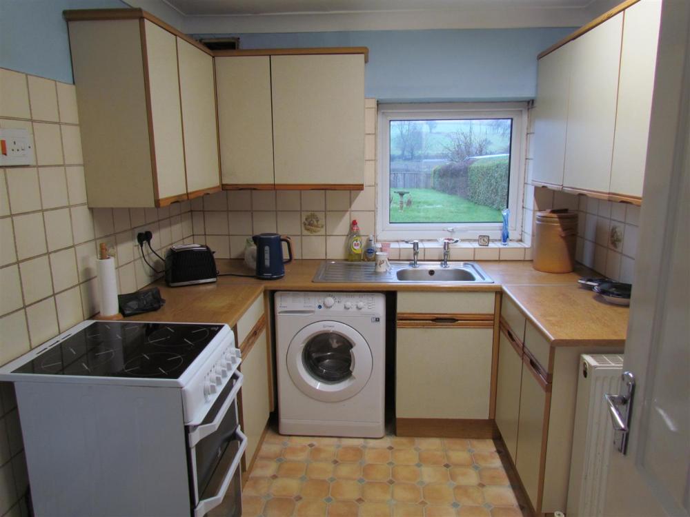 Comprising single drainer sink unit set within rolled edge work surfaces with tiled splash backs, wall and base units incorporating drawer compartments, electric cooker point, central heating radiator, understairs storage cupboard, plumbing for automatic washing machine, double glazed window to the rear elevation overlooking the garden. Door to covered passageway.