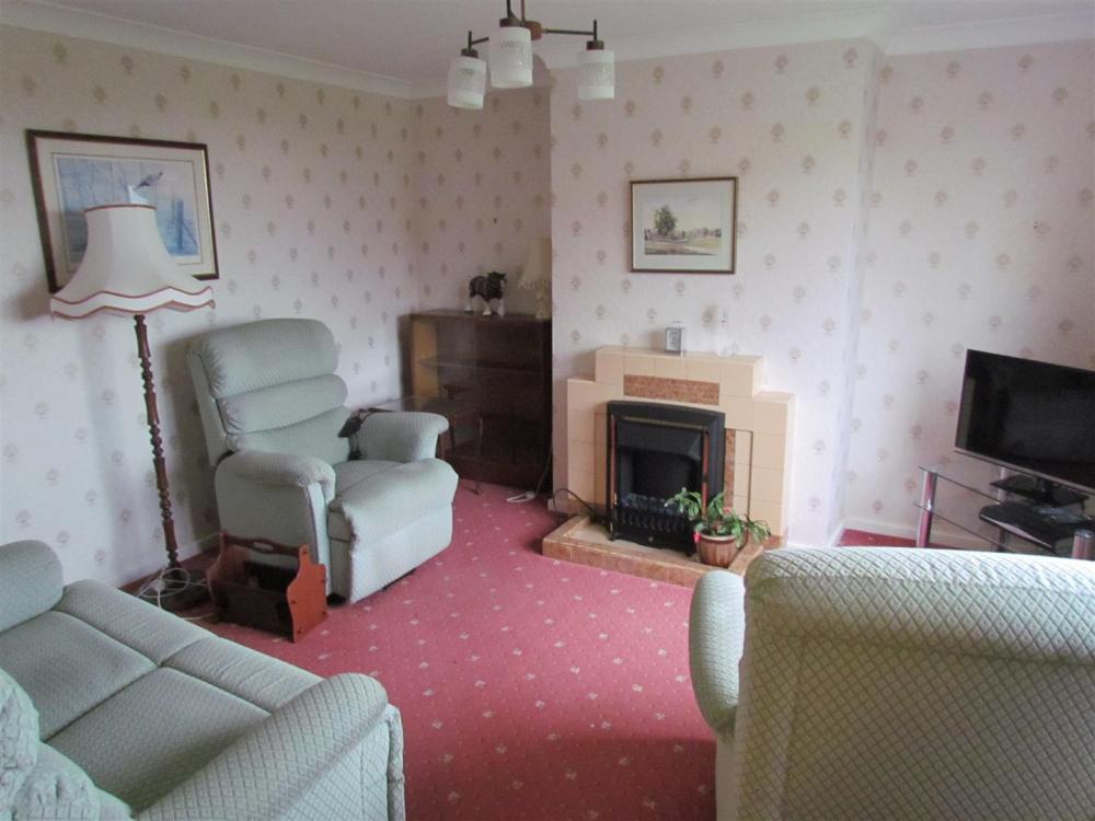 Tiled fireplace with hearth, electric fire, double glazed window to the front elevation, central heating radiator and coving to ceiling.