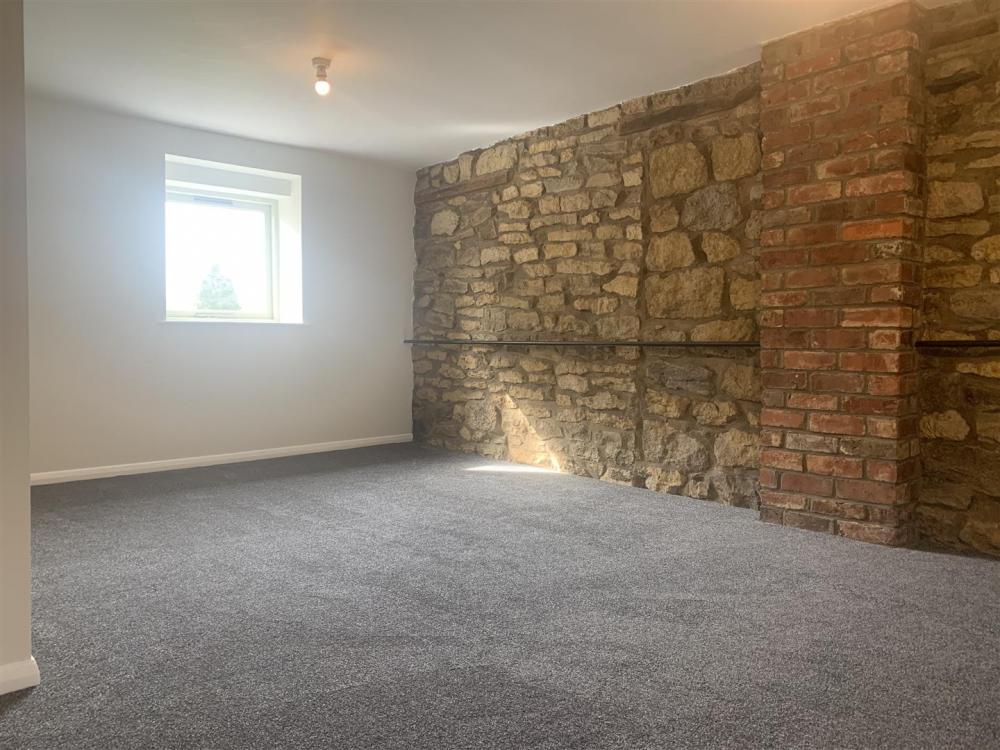 Brick feature fireplace, TV point, timber framed double-glazed casement windows to the front, door to the side, part exposed stone and brick walls and electric radiators.