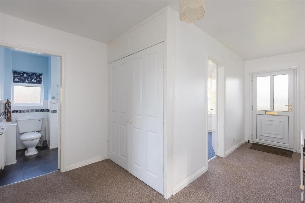 Opaque uPVC double glazed entrance door, storage cupboard, single radiator.