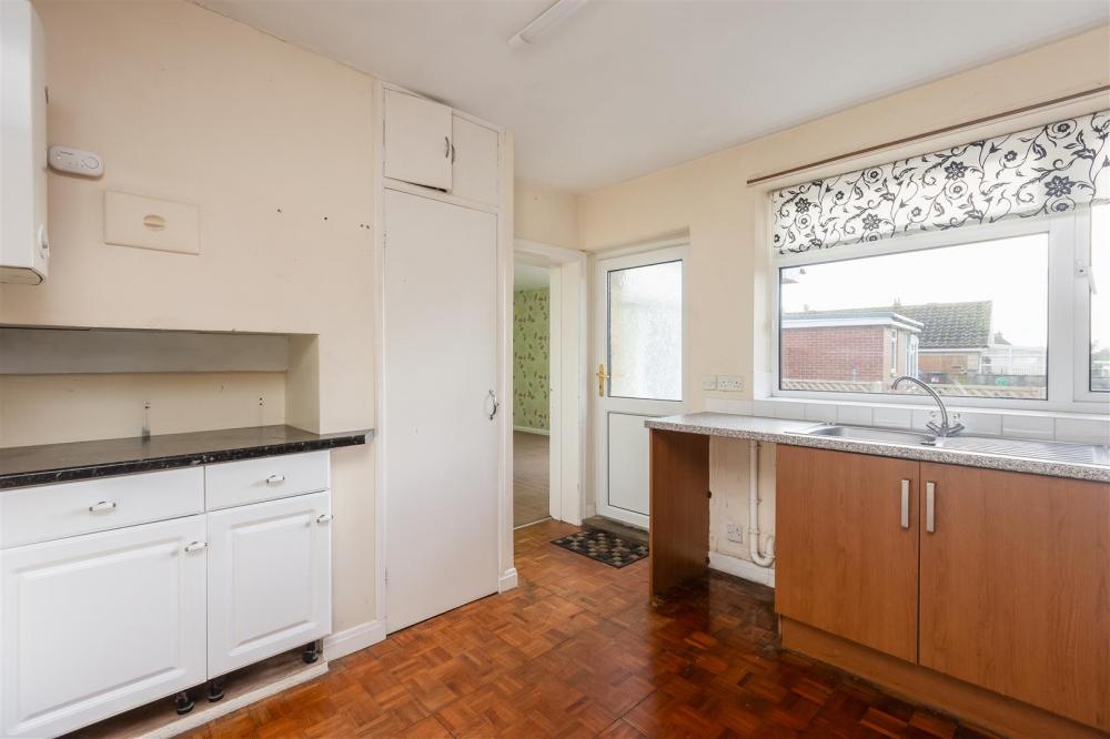 Range of fitted wall and base mounted units with work surfaces over, single stainless steel sink and drainer, gas cooker and hob, plumbing for washing machine, Paquet flooring, wall mounted Worcester gas fired boiler, double radiator, loft hatch, uPVC double glazed door to outside.