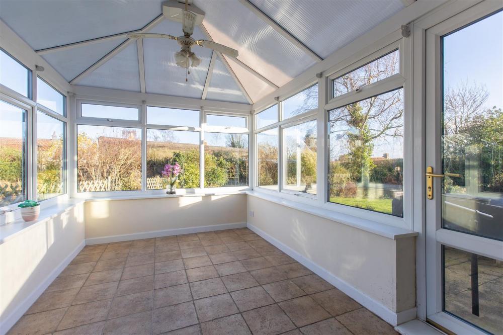 The property stands on a substantial corner plot with lawned gardens to the front with herbaceous borders. A tarmacadam driveway leads to a garage with workshop to the rear. The property boasts wrap around mature gardens to the side and rear with patio and attractive seating area, herbaceous borders, lawned gardens, two greenhouses and timber garden shed.