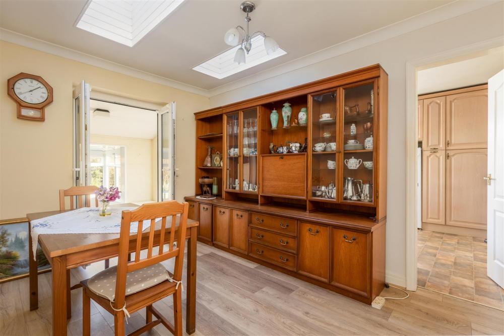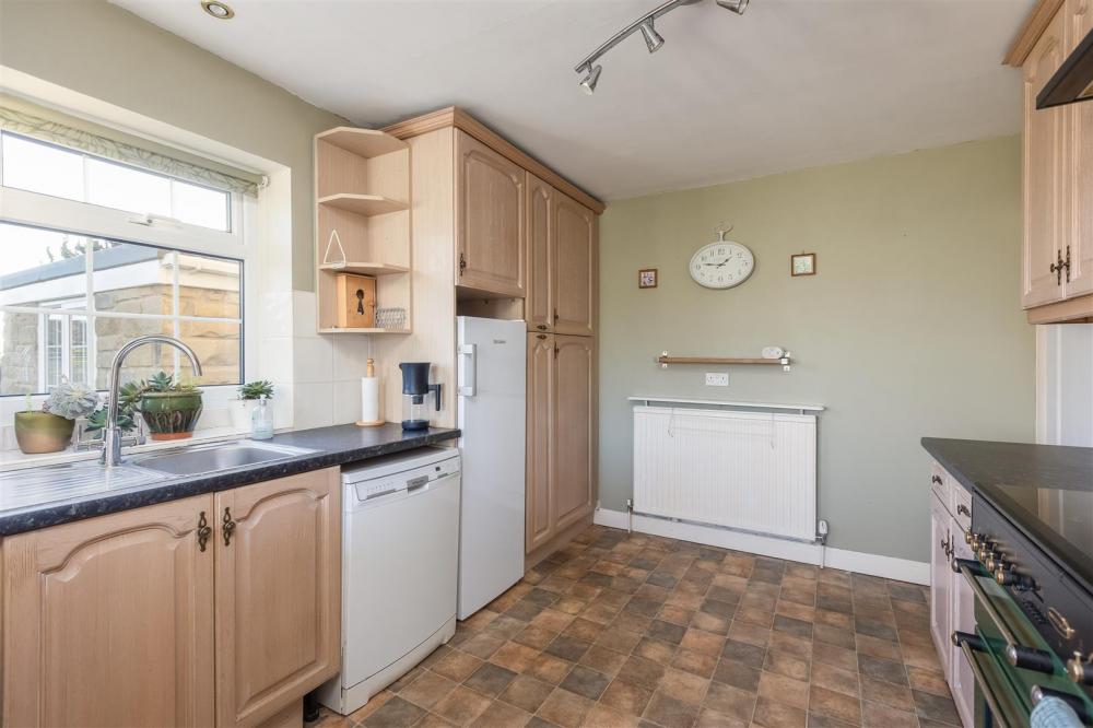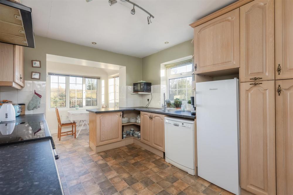 Side and rear aspect uPVC double glazed windows, range of fitted base and wall mounted units, stainless steel sink and drainer with chrome mixer tap over, dishwasher, Rangemaster gas cooker with cooker hood. Dining area.